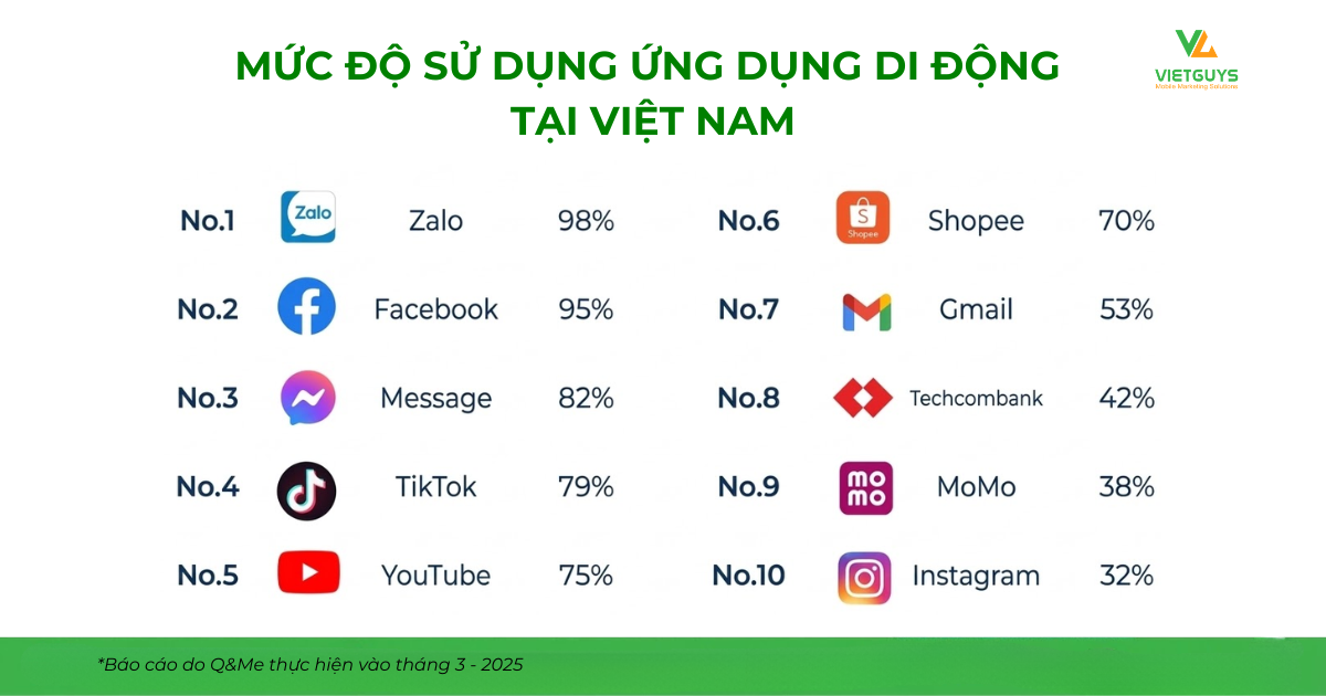 Việt Nam có một bối cảnh tương tự với Zalo. Theo báo cáo "Vietnam Mobile App Popularity 2025" (Mức độ phổ biến của ứng dụng di động Việt Nam 2025) do Q&Me thực hiện vào tháng 3 - 2025, Zalo tiếp tục giữ vững vị trí dẫn đầu các ứng dụng nhắn tin và gọi điện phổ biến tại Việt Nam với tỷ lệ sử dụng đạt 98%, bỏ xa ứng dụng đứng thứ 2 là Messenger (82%), và các ứng dụng còn lại như Gmail, Telegram hay Microsoft Teams đều dưới 55%. Khác với nhiều nền tảng social media, Zalo có đặc điểm là được sử dụng thường xuyên cho các tương tác mang tính chính danh như thông báo dịch vụ, chăm sóc khách hàng hoặc giao tiếp với các doanh nghiệp. Quan trọng hơn, hệ sinh thái Zalo Business Solutions (ZBS) - bộ giải pháp dành cho doanh nghiệp của Zalo - cho phép các doanh nghiệp triển khai nhiều kịch bản giao tiếp và dịch vụ khách hàng trên nền tảng này, từ tin broadcast, chatbot, đến tích hợp với các hệ thống backend như CRM hoặc contact center.